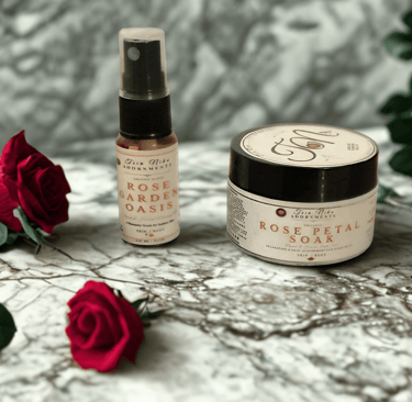 Soothing Rose Gardenia Lily Soak: Immerse yourself in tranquility with this blend of Epsom salt and delicate florals, designed to ease tension and detoxify the body.